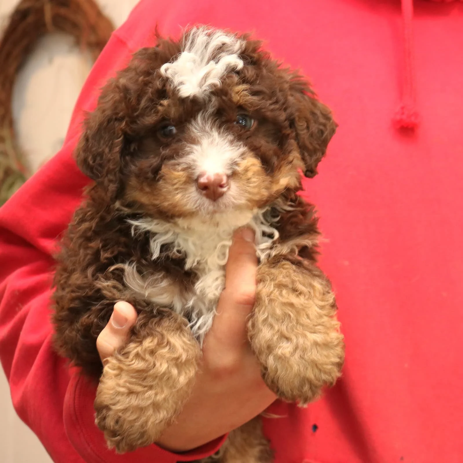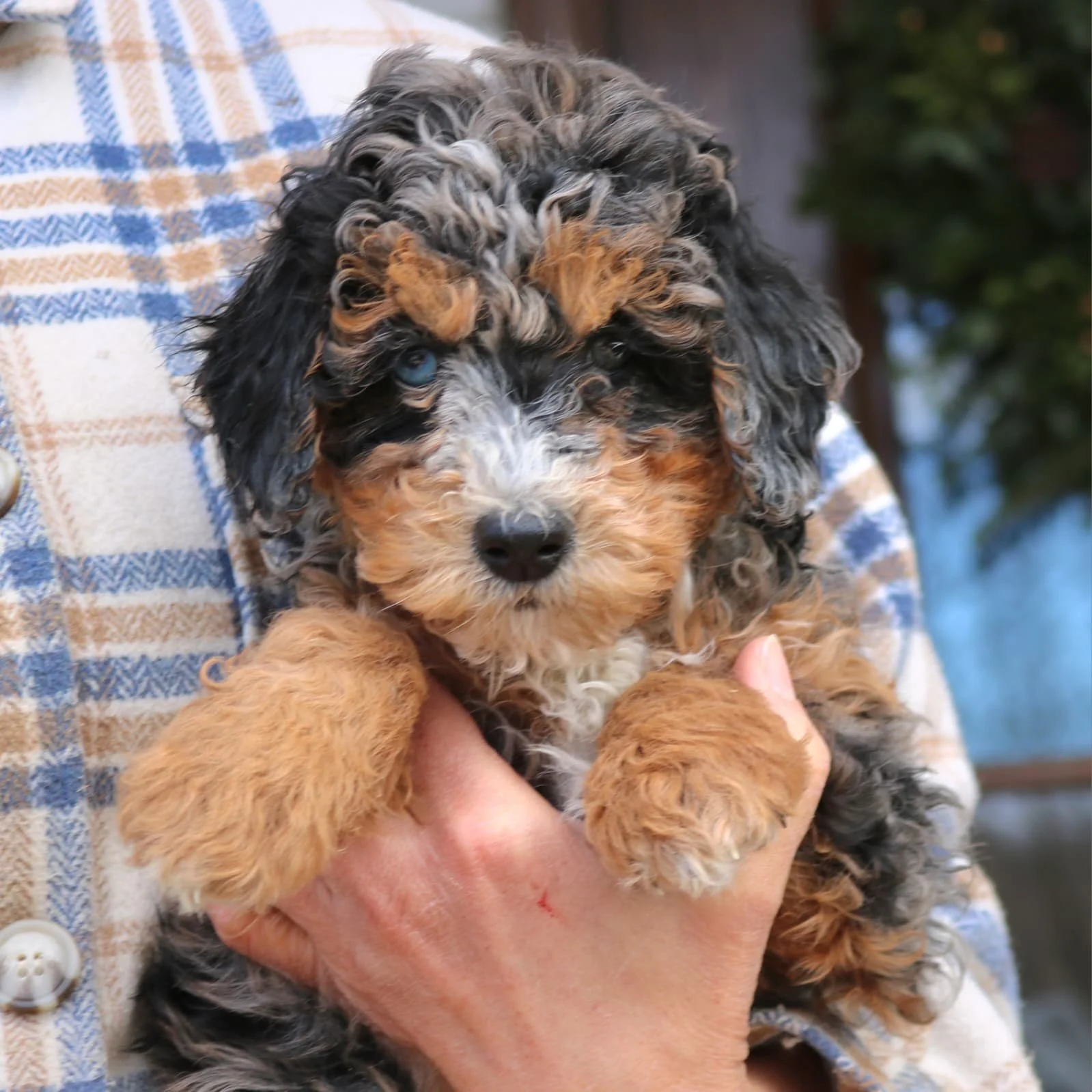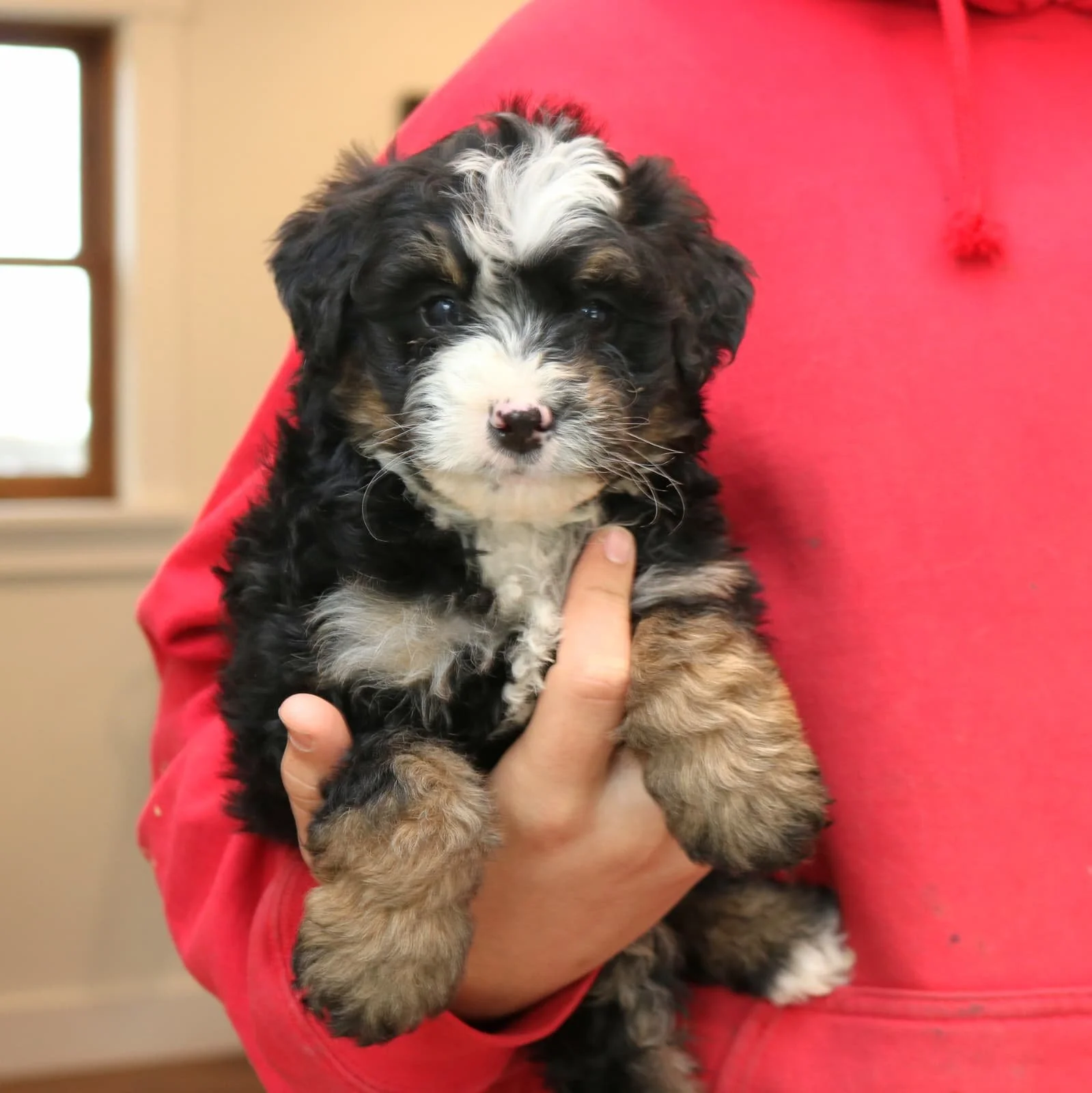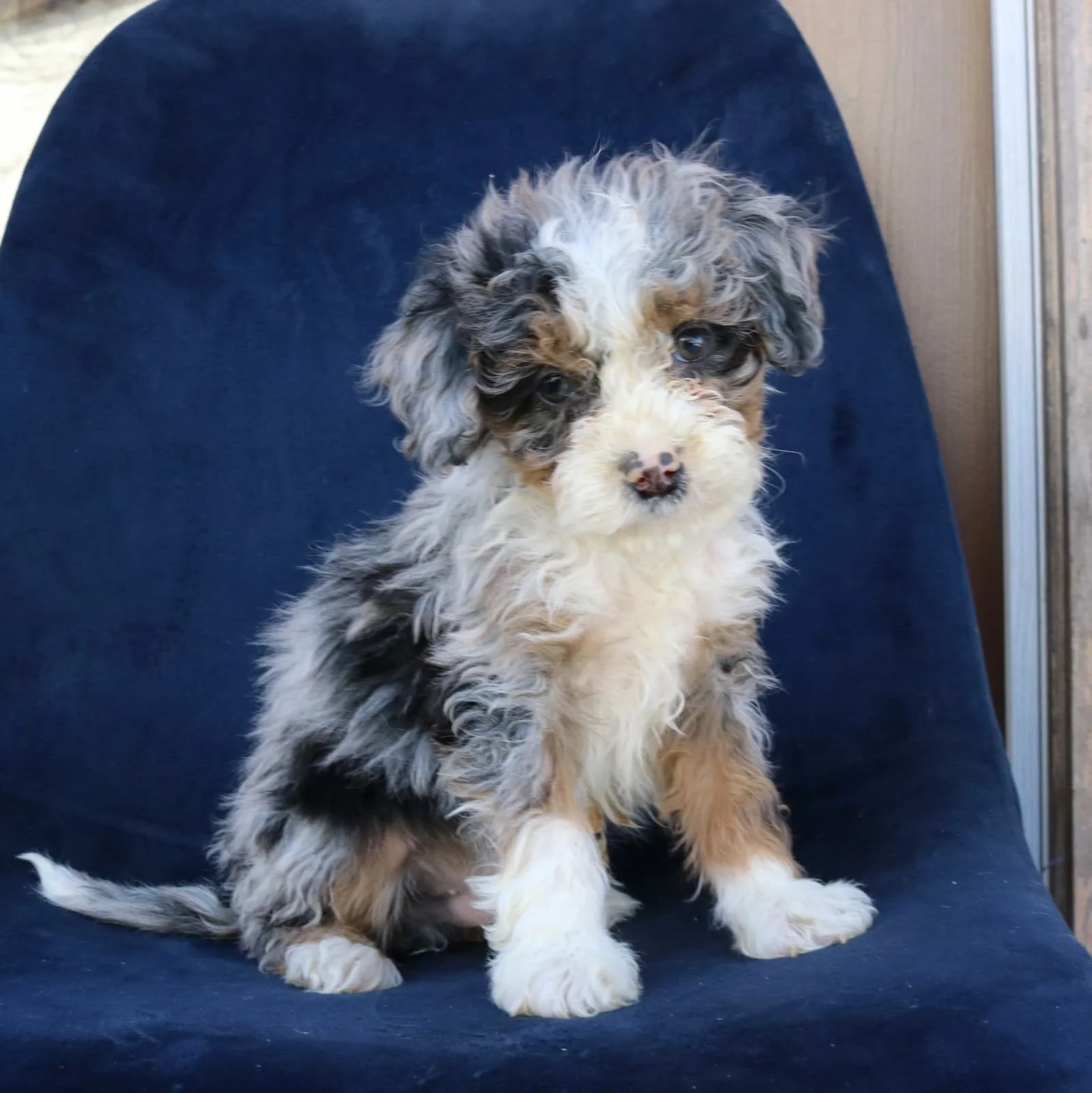 Mom (Rosie) is a 24-pound Bernadoodle Dad (Merle) is a 29-pound Bernadoodle DOB: Nov 19, 2025