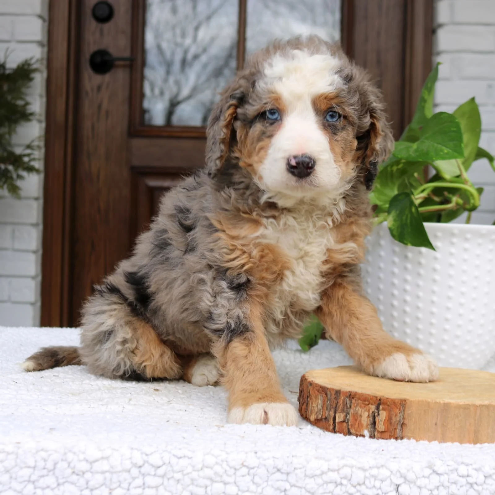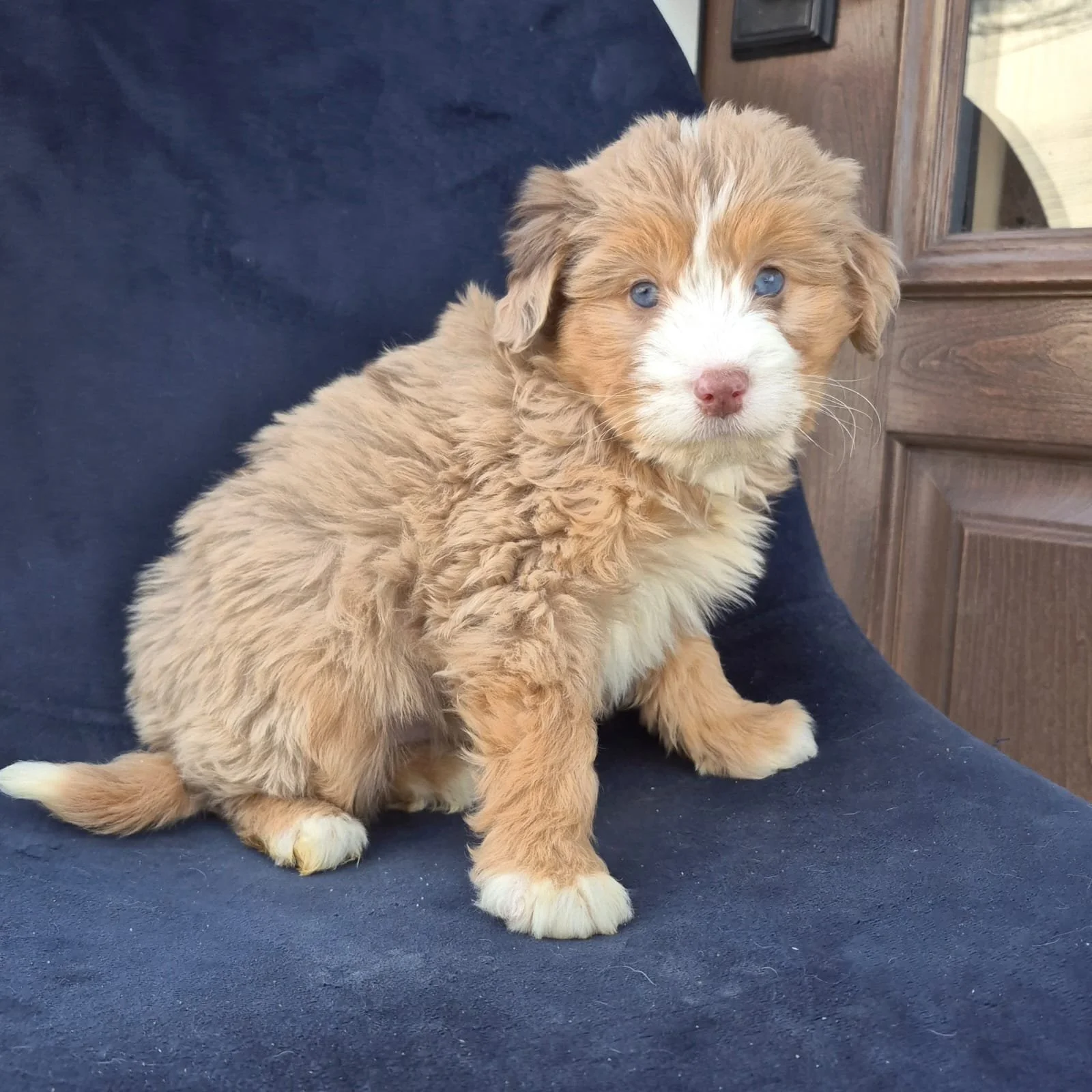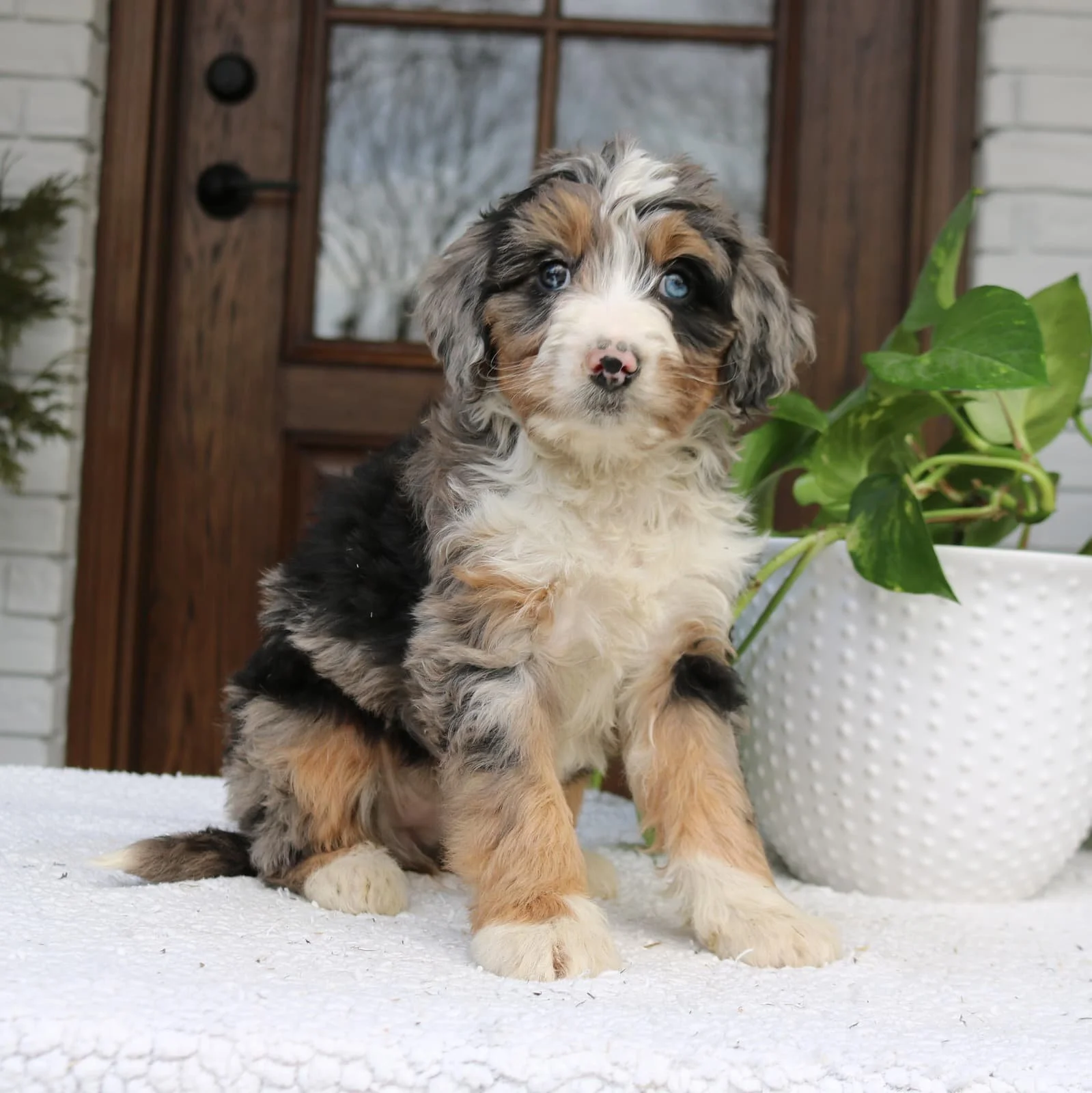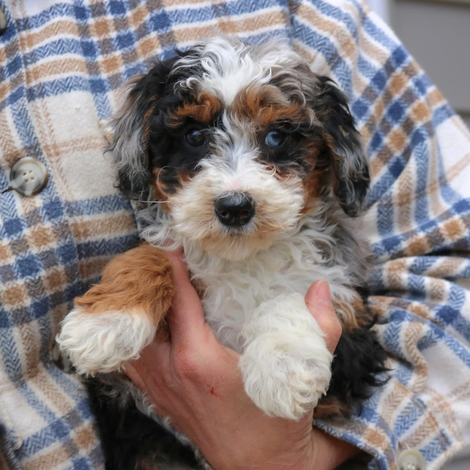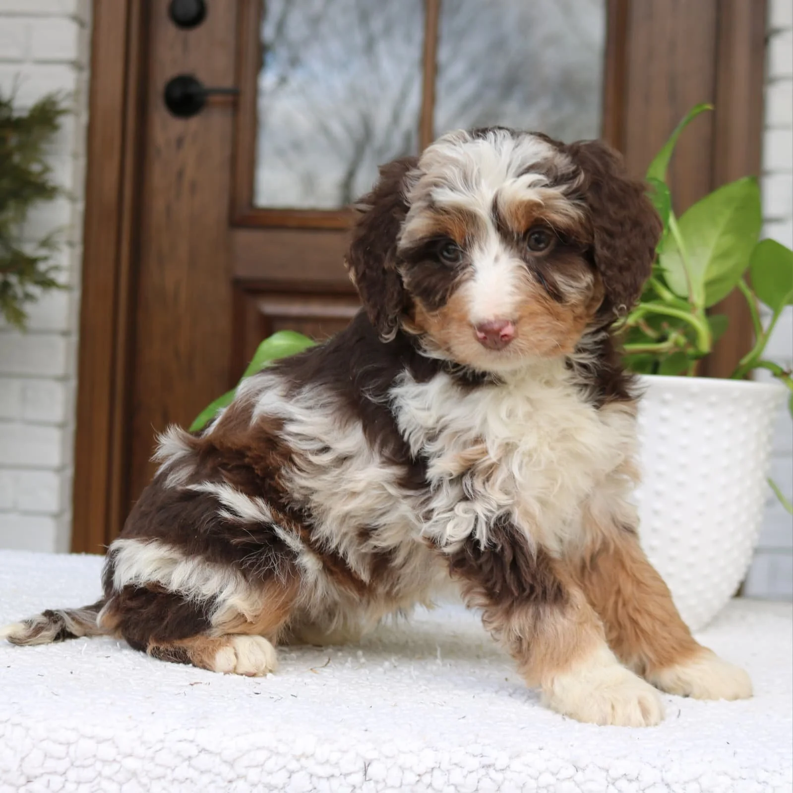 Mom (Rosie) is a 24-pound Bernadoodle Dad (Merle) is a 29-pound Bernadoodle DOB: Nov 19, 2025